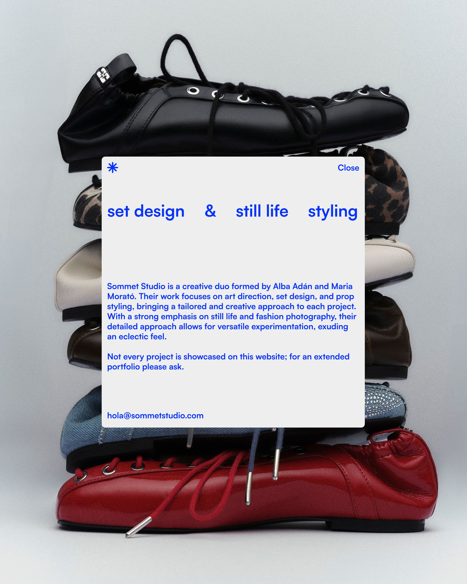 Sommet is a meticulous studio specializing in art direction, set design, and prop styling—hands‑on and material‑led. We wanted to reflect their approach to work: eclectic yet timeless. The design maintains restraint without losing warmth, creating a system that allows for flexibility and vibrance.